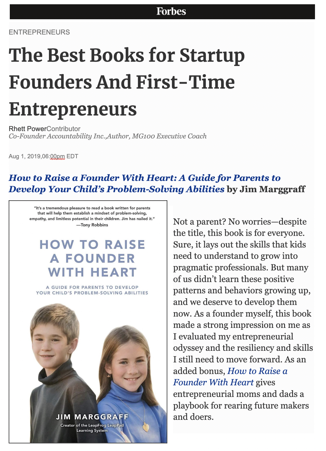 Forbes reviewed Jim's book, and declared it not only valuable for parents, but a BEST BOOK for any Startup Founders and First-Time Entrepeneurs.